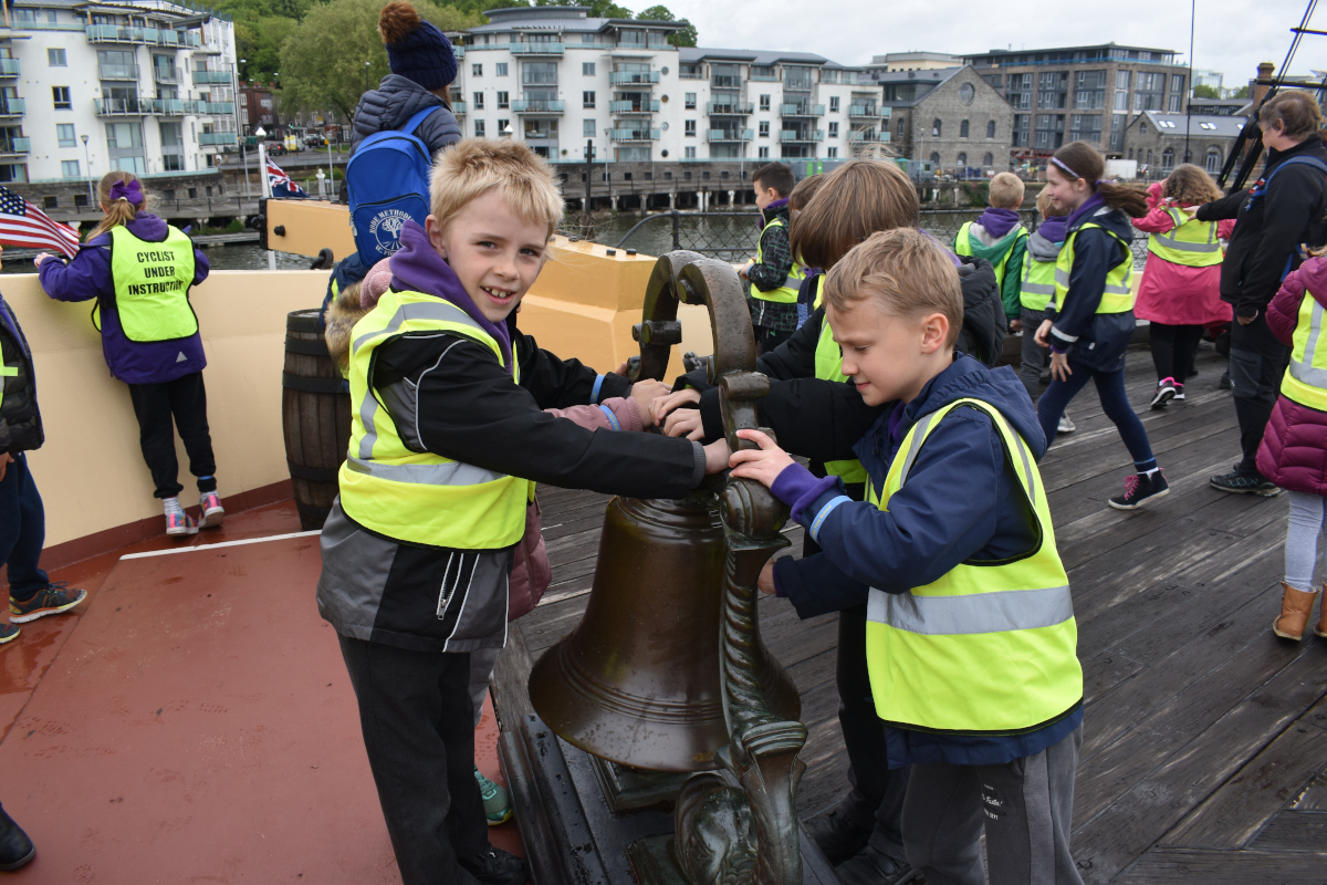 Our day kicked off with a long coach ride to the beautiful city of Bristol. On the way, the children marvelled at the change in landscape and the industrial nature of the buildings. They were also keeping their eye out for any ‘BANKSY’ artwork! Once we arrived, we met our wonderful tour guide, Jan, who was ready with our tickets. She took us on board the illustrious ship and showed us how the upper-class would travel. We then descended below deck to see the facilities that the less wealthy passengers would have had endured. The children loved walking around the kitchens and finding all the fluffy cats! After lunch, the children took part in a workshop about the launch of the SS Great Britain. We travelled back in time to 1842 and the children had a go at hammering rivets into metal sheets. After that, we travelled to 1843 – the day of the launch! The children were dressed to impress in an array of Victorian clothes: Oliver looked very regal dressed as Prince Albert.