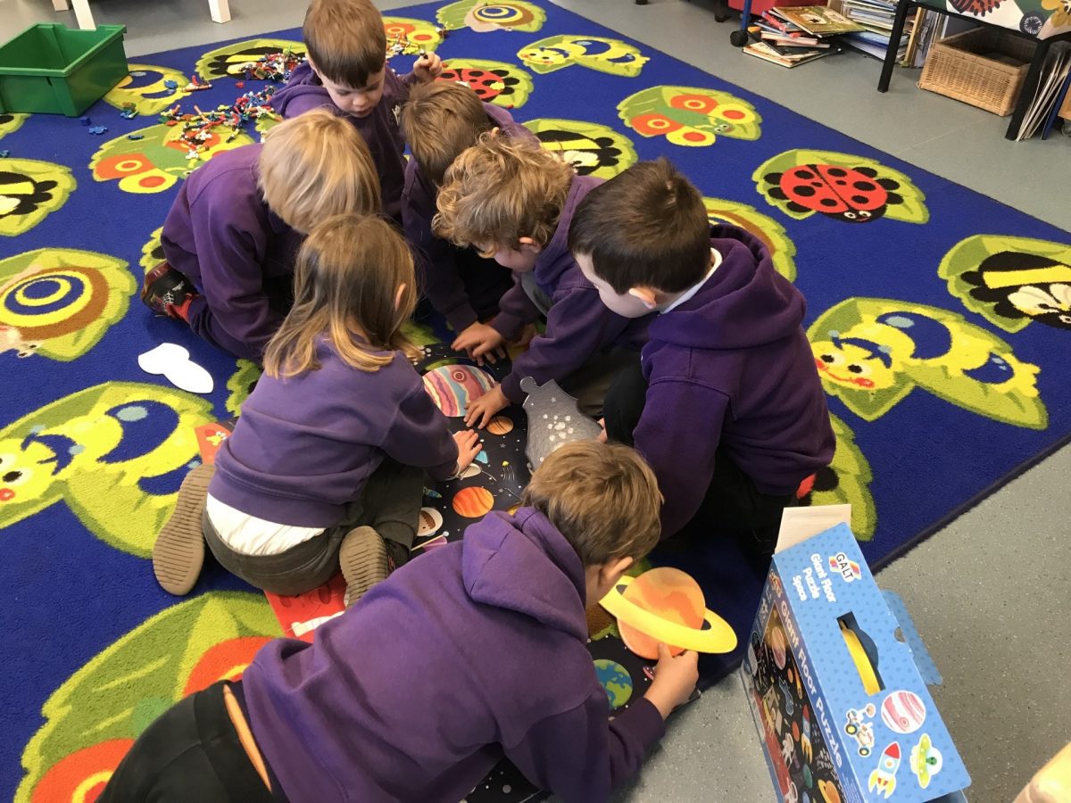 Here are a few photos depicting some of this week’s learning. Gruffalo Class have been exploring space, working together to complete a new space puzzle. They have created a giant moonscape on the wall using 3D shapes and made recycled space rockets. BFGs have started their new focused book ‘Leon and the Space Between’ and have been using their sewing and papier-mâché skills to create some amazing puppet characters from the story.