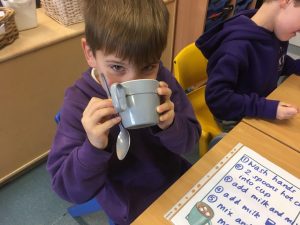 Co-incidentally, Gruffalo class were reading instructions on how to make hot chocolate and then making it, they also did a fabulous job of washing up once they had finished!