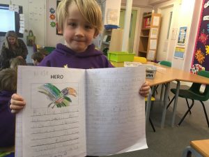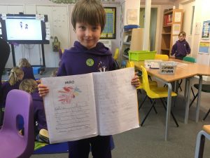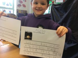 Throughout the day on Friday 3rd February, Mrs Muxworthy had a stream of Gruffalo and Elmer children visiting her office to share the amazing writing they had been producing. Gruffalo have been writing about planets and Elmer Class have been writing their final story about their class book ‘A Crow’s Tale’. Please take a look at some of the wonderful writing examples.