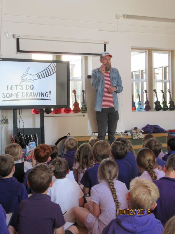Olaf had adults and children in hysterics from the go! As children shyly trundled into the hall not knowing what to expect, they quickly all began to giggle at his amazing welcome illustrations and new straight away that they were in for a real treat.