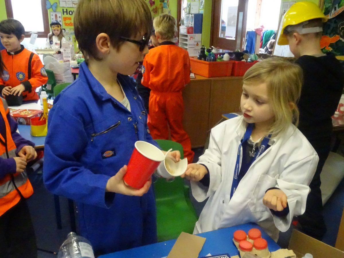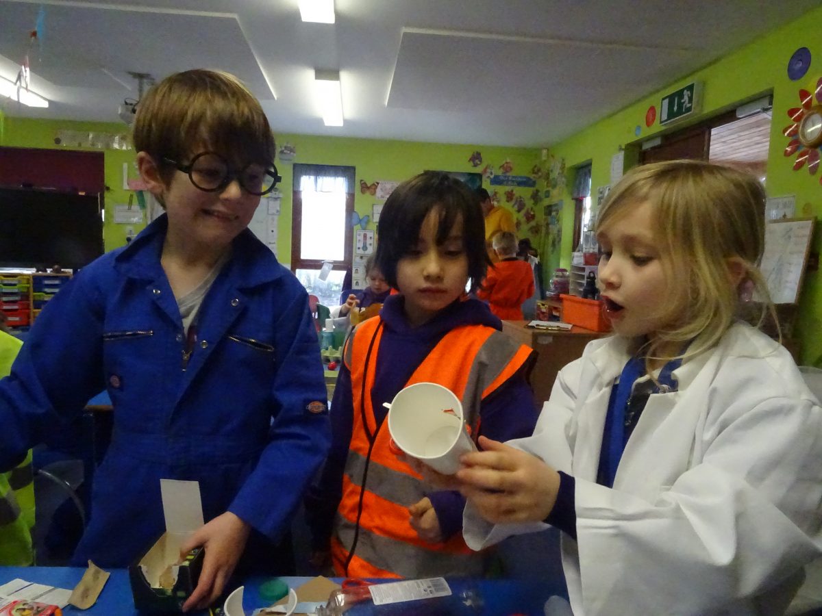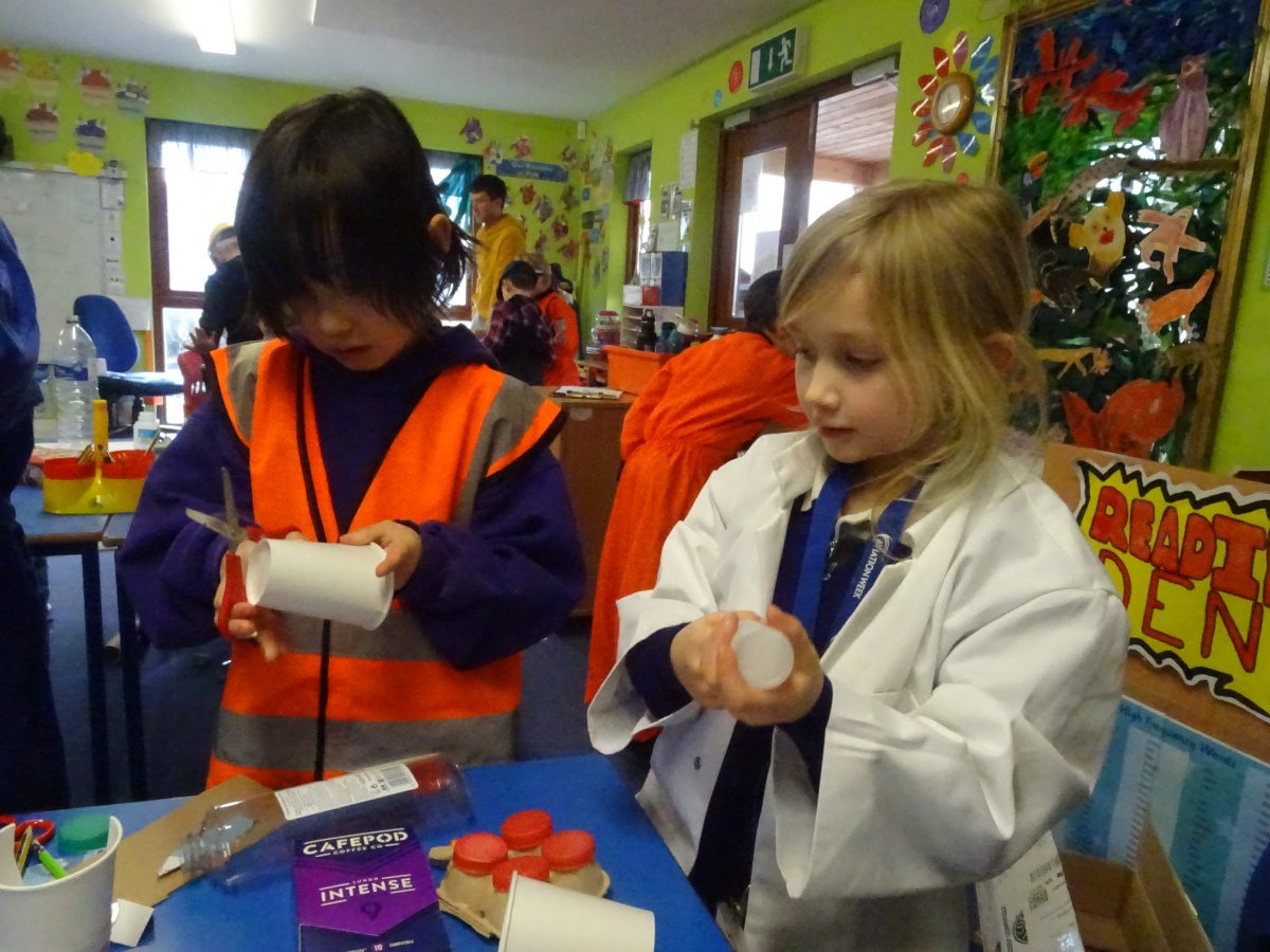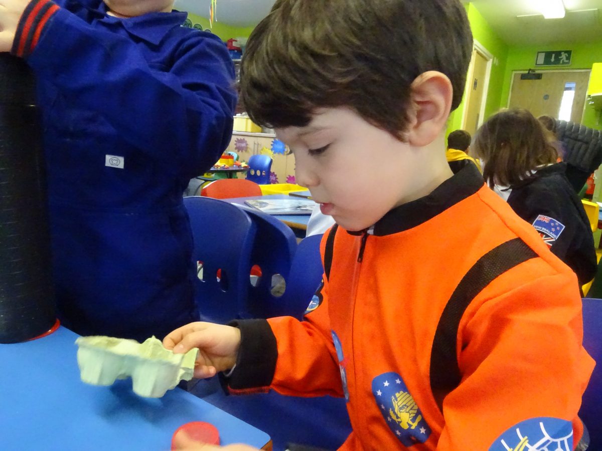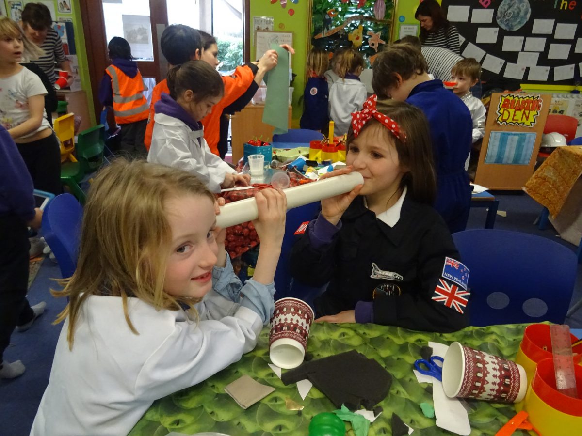 The children's finished spacecraft are a celebration of creativity....