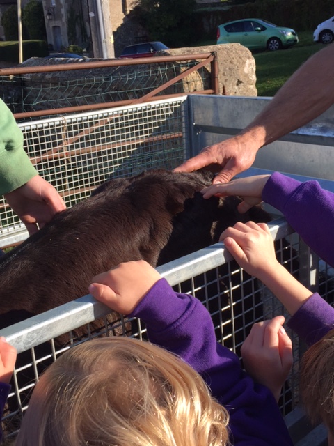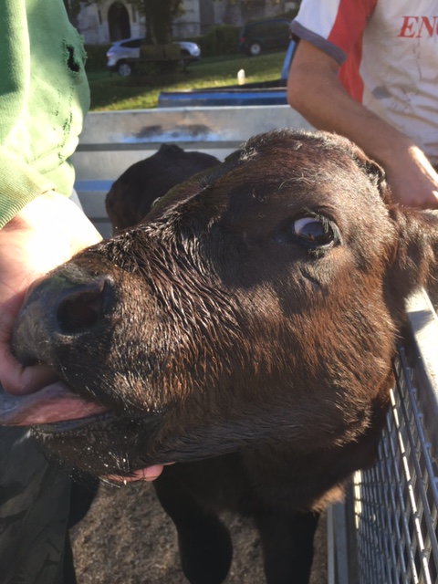 Budding farmers learn about feeding this special calf. ...