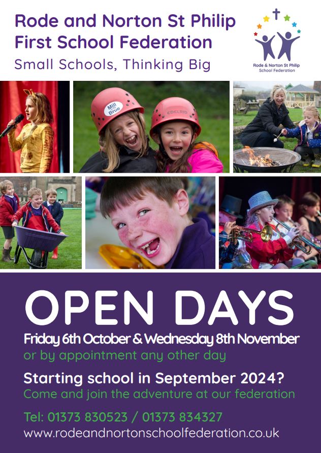 We have two open day dates available:Friday 10th October and Friday 14th November 2025. Both starting at 9:30am at Norton St PhilipOur wonderful head teacher Mrs Muxworthy will be able to answer any questions you have and you'll get the chance to see both school...