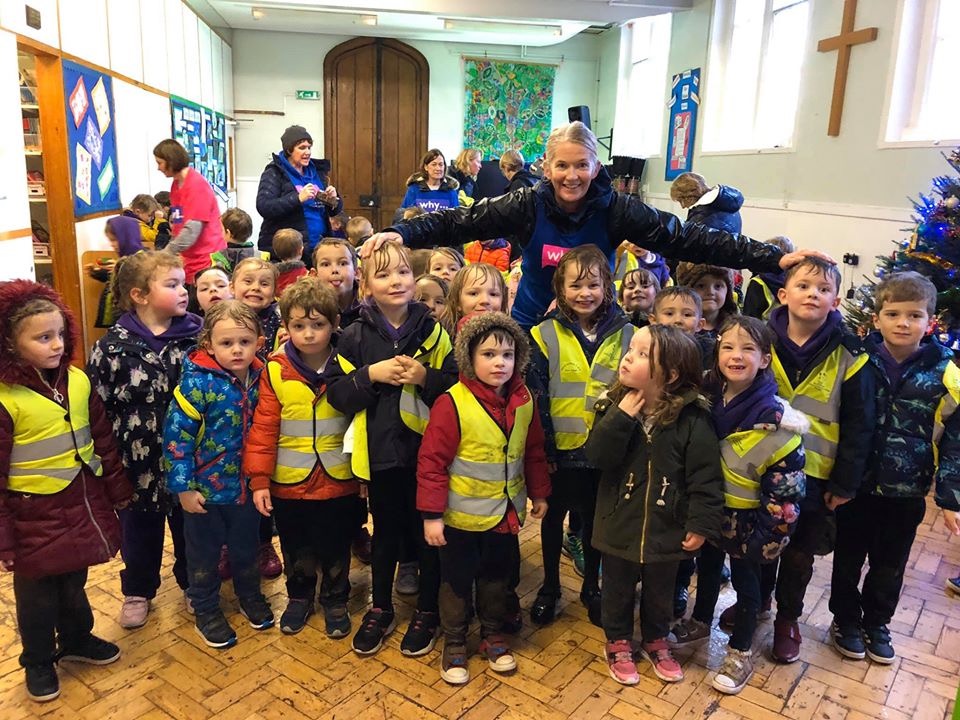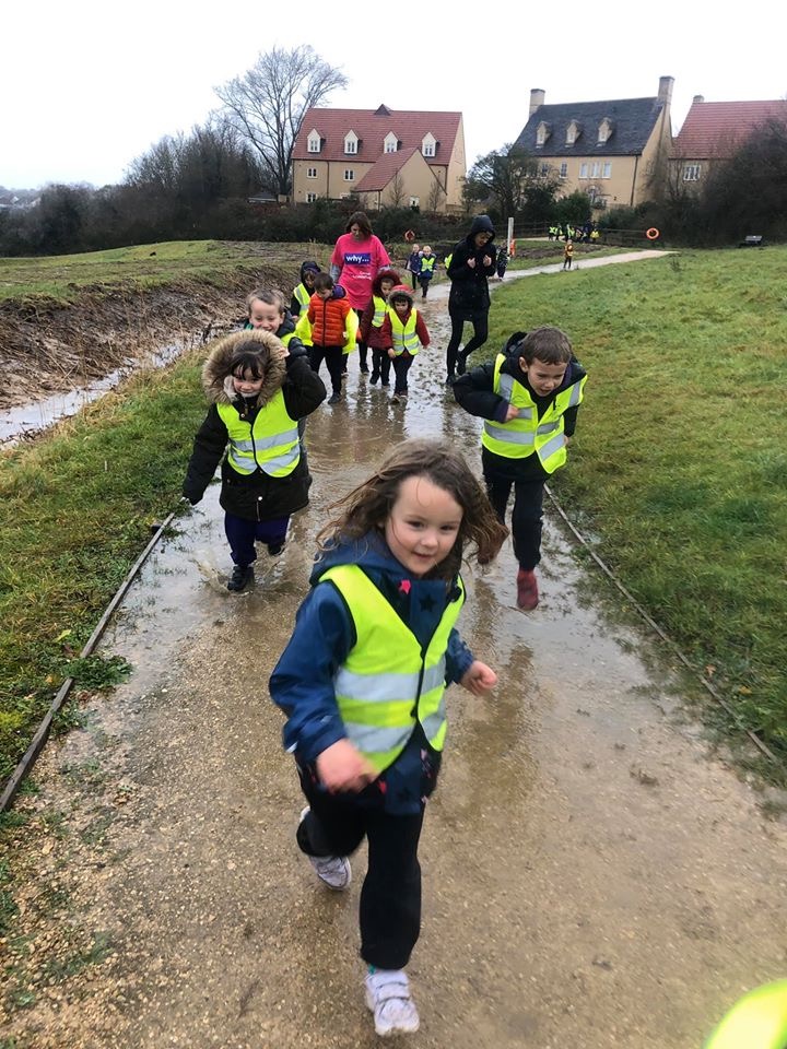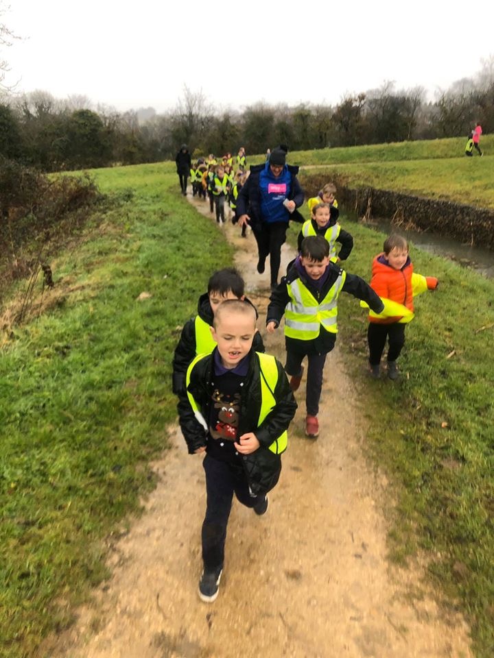 Now the Norton children’s turn to run a mile with Sergeant Rachel Clark for WHY Cancer Counselling. And what a day we picked! After a brief assembly and warm-up we set off on our mile and then the heavens opened. There were some mighty puddles on the way, and we all got completely soaked. The children showed great resilience and battled on through, positively embracing the deep puddles and mud. There were screams of laughter as they ran through the puddles, lots of smiles on faces and a real feeling of ‘we can do anything!’. Congratulations everybody, including the staff, for taking part with such enthusiasm.