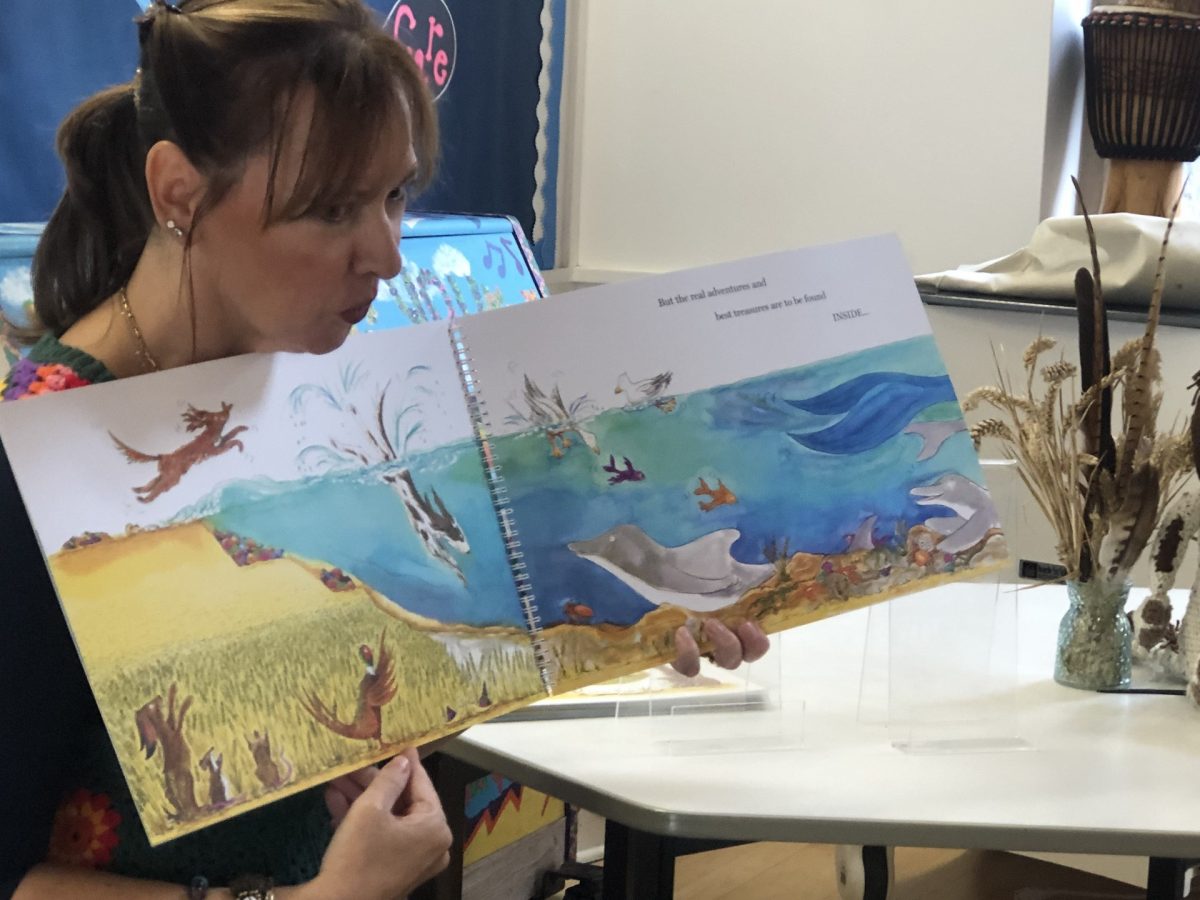 The children listened beautifully, thoroughly absorbed in Gina’s stunning illustrations as she brought her ‘ocean farm’ story to life. They learnt about the process of creating a book from start to finish as well as discussing future ideas for one of her characters for her next book. What will happen to the Octopus and will Puddles, Rosie and Holly be patient enough for nature to weave it’s magic once more?