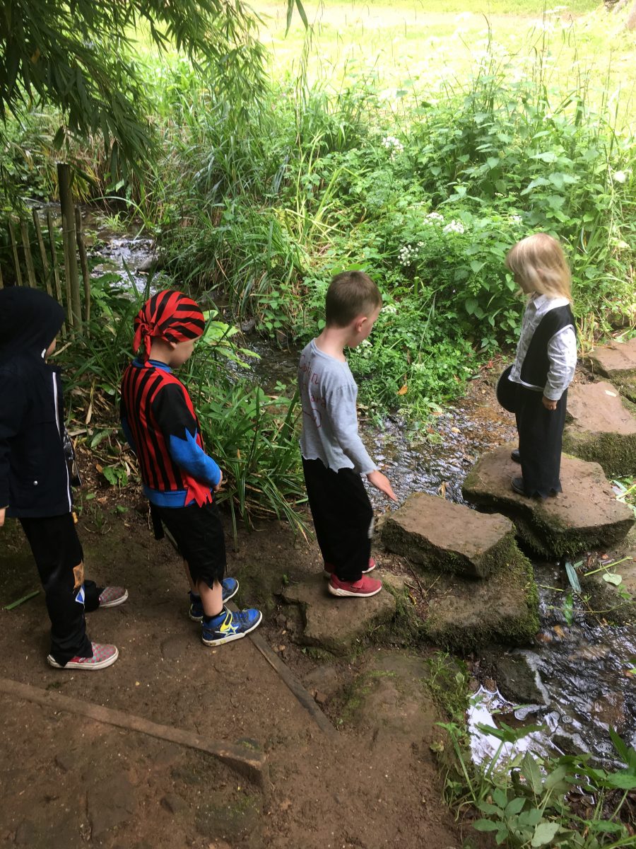 We continued around the grounds searching for our lost pirate ship. We headed through a beautiful woodland area where there were specimen trees from around the world. We measured their trunks with our arm-span and climbed the best ones.