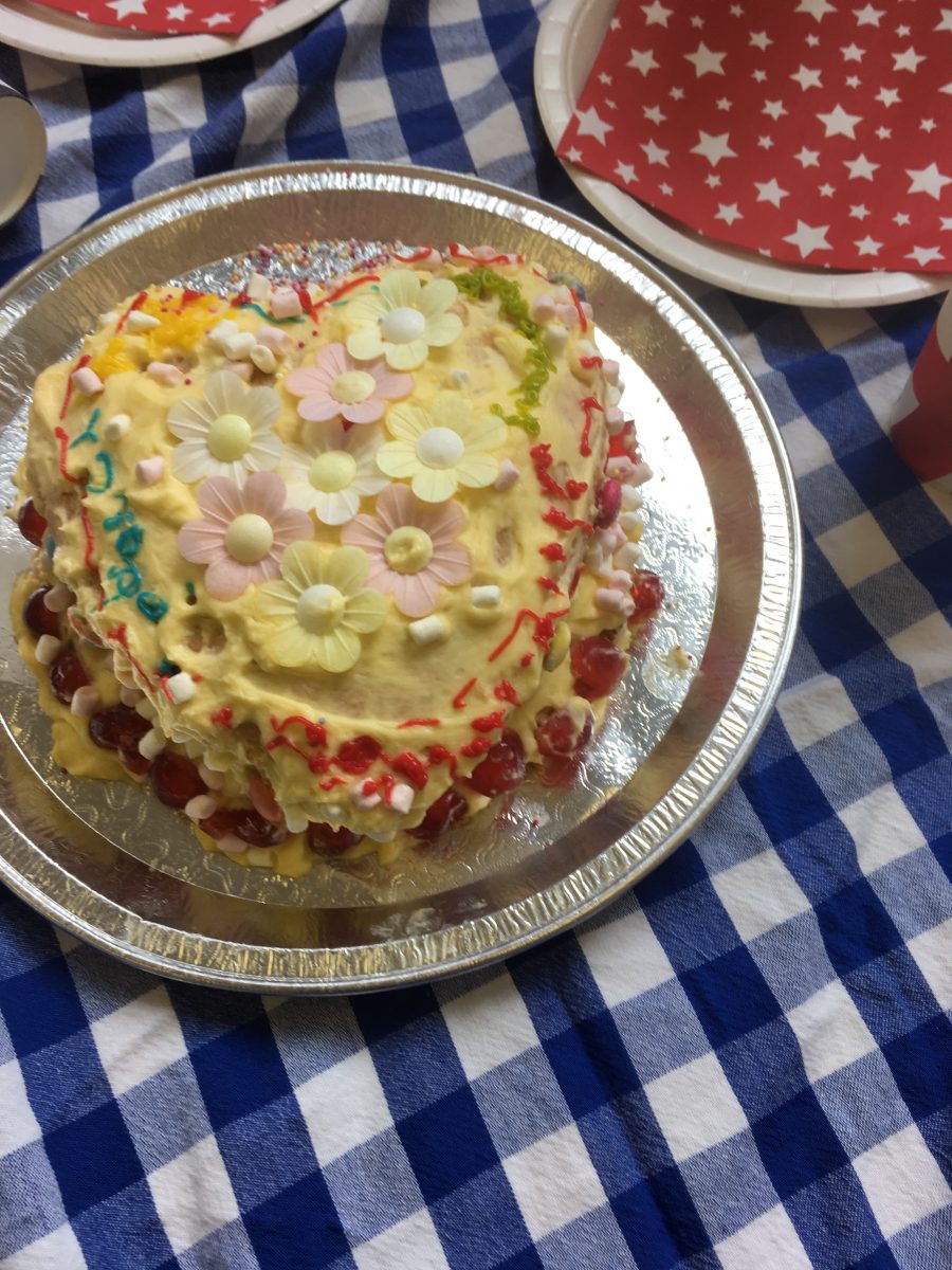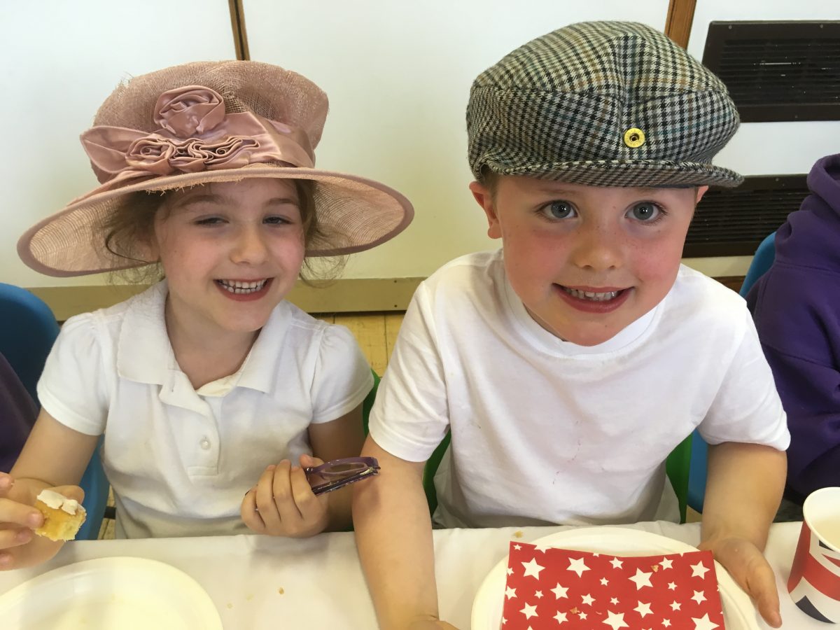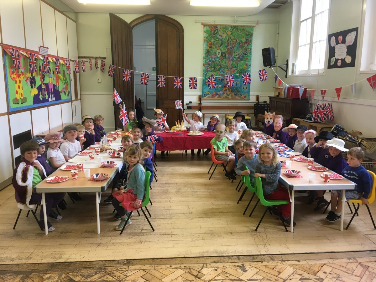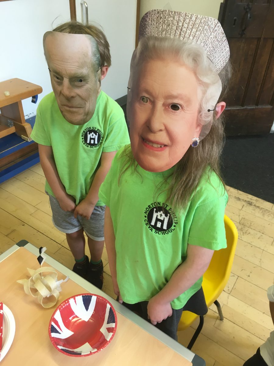 Harry and Megan were in Norton st. Philip on the last day of term along with other members of the Royal family. They came to taste the three delicious wedding cakes that Gruffalo Class had baked and decorated. We played the wedding march as the newlyweds walked into the hall and stood for the National Anthem when the Queen and her corgis arrived. The cake was cut and we toasted the royal couple with some ‘champagne’ and admired each other’s fancy wedding hats.