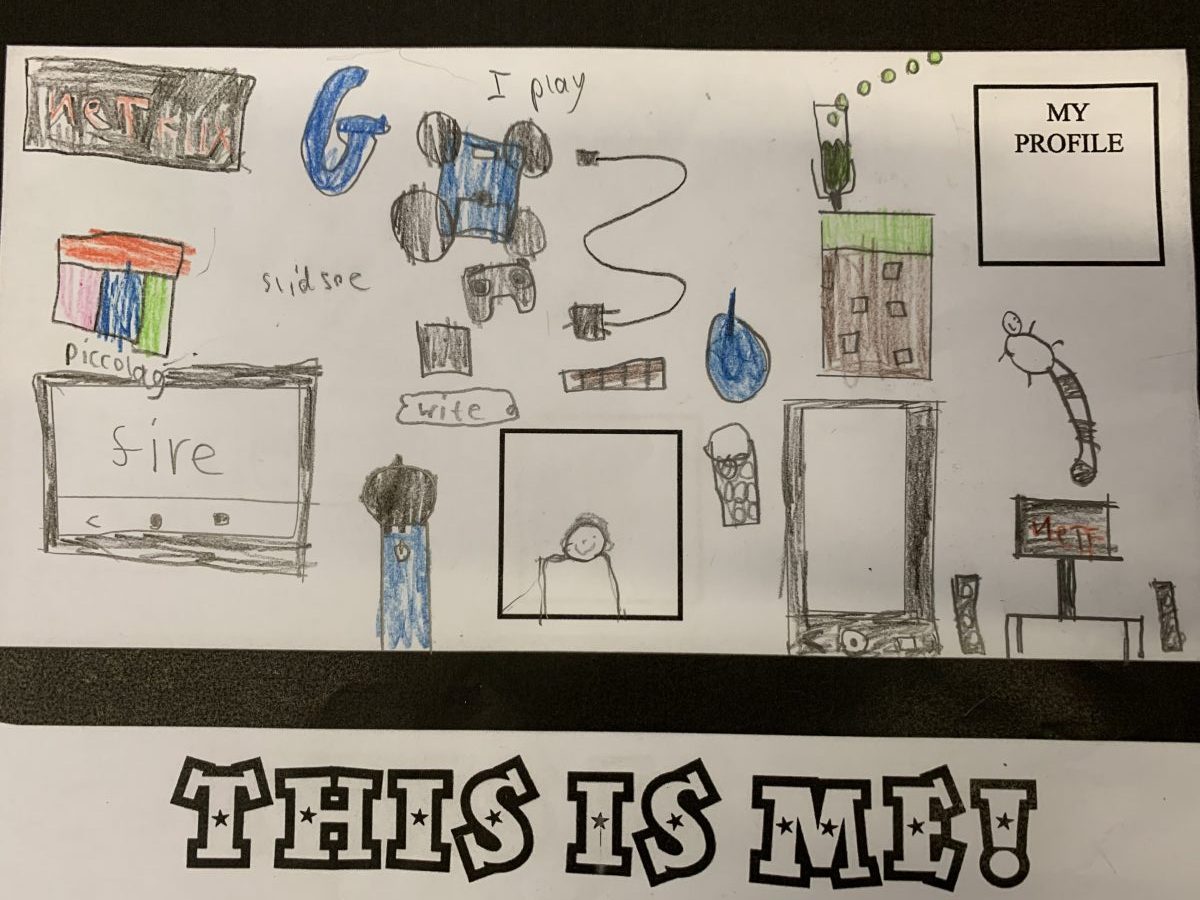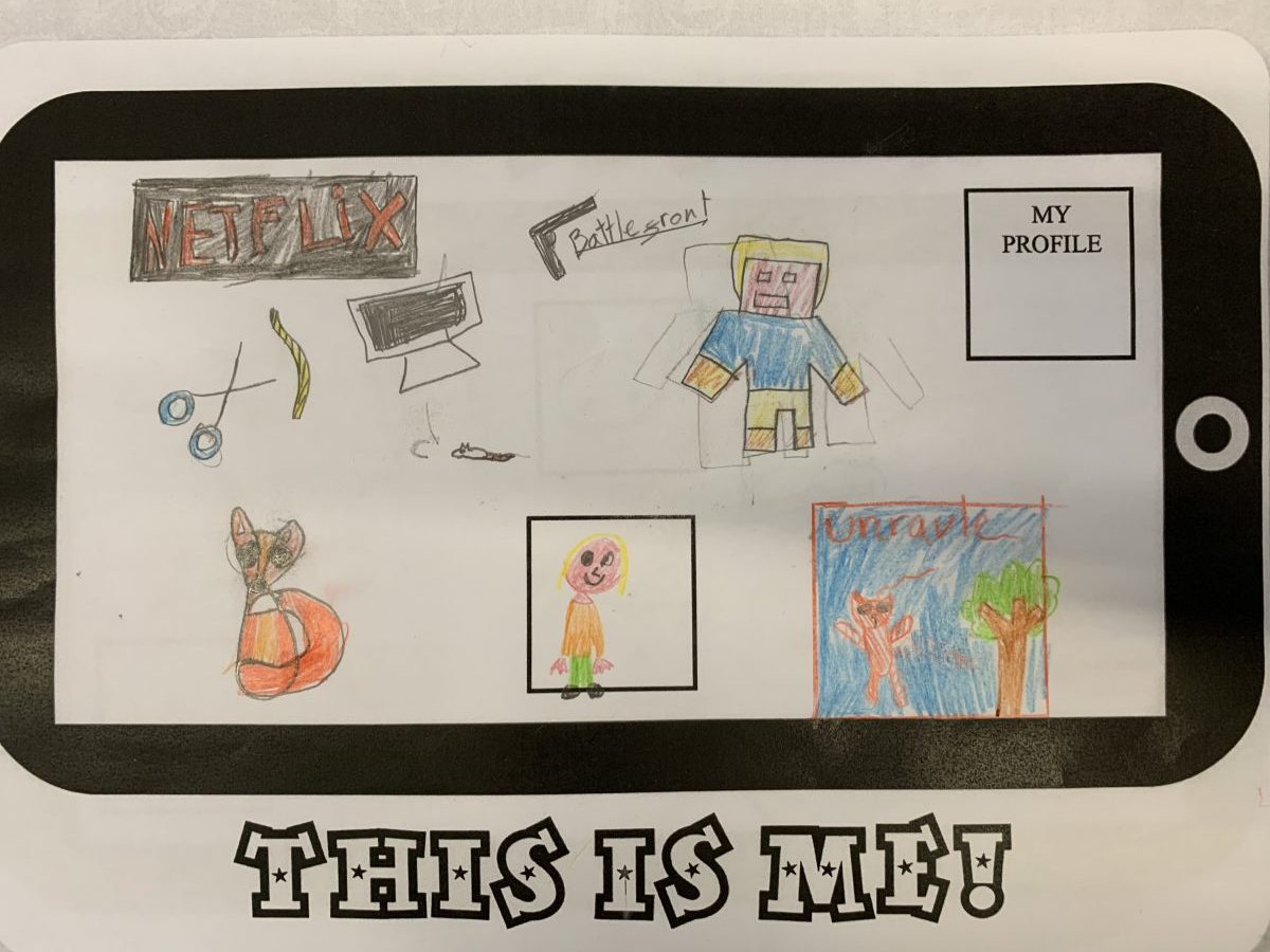 In Elmer Class the children created a profile of all the things they enjoy most, offline and online, and the types of things that are suitable to share online and offline.