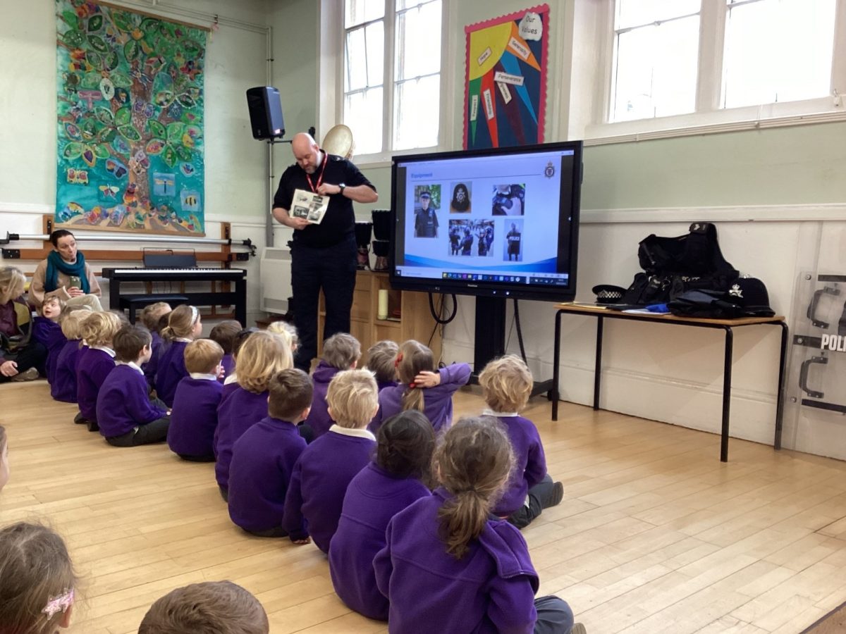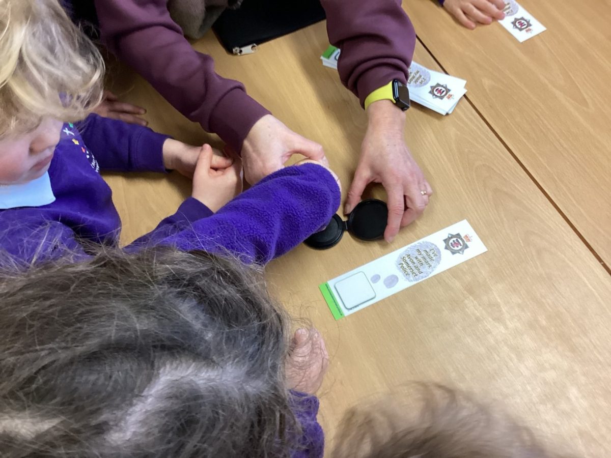 This week Gruffalo and Elmer Class were visited by Sergeant Hales. He talked to us about what police officers do and how they help us. We learnt the number to call in an emergency 999; and that we need to tell them our name and where we live. We also learnt about stranger danger and how we can keep ourselves safe. Sergeant Hales bought in some of his uniform which we tried on and we had a go at taking our own fingerprints with a special fingerprint kit! We also talked to Inspector Asfour on the police radio before we got to see the police van!