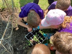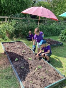 Wild Things class took a walk up to look at the rapeseed fields as part of their science plants unit. They took photos of the different parts of the flowers and will soon go to the Fussels factory to see how they are made in to oil. In the afternoon the children planted their seedlings into the raised beds. So far, they have pumpkins, squash, sweetcorn, potatoes, sweet peas and sunflowers!