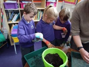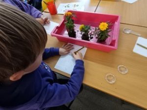 On Thursday we carried out a Governors’ Learning Walk across the school, tracking children’s learning journey as they move through the school. Our focus was on Science and we were delighted to see so much investigation taking place. Children were able to talk to us about their learning using technical language. Some of the youngest children in Gruffalo Class patiently explained to us about the life-cycle of a seed and a butterfly whilst drawing detailed diagrams. Outside, children were using a viewfinder to identify plants. Elmer Class were naming flowers and labelling their parts. Both classes were doing careful looking whilst drawings plants. We tracked down Paddington class who were all outside researching animal micro-habitats. They were digging in the soil and looking under logs, recording what they found on a chart. In the school pond they discovered newts and dragonflies. Meanwhile, Wildthings were up to their elbows in compost. They had set up a number of fair tests, planting seeds in different conditions. Predictions were made about which seed would flourish and why.