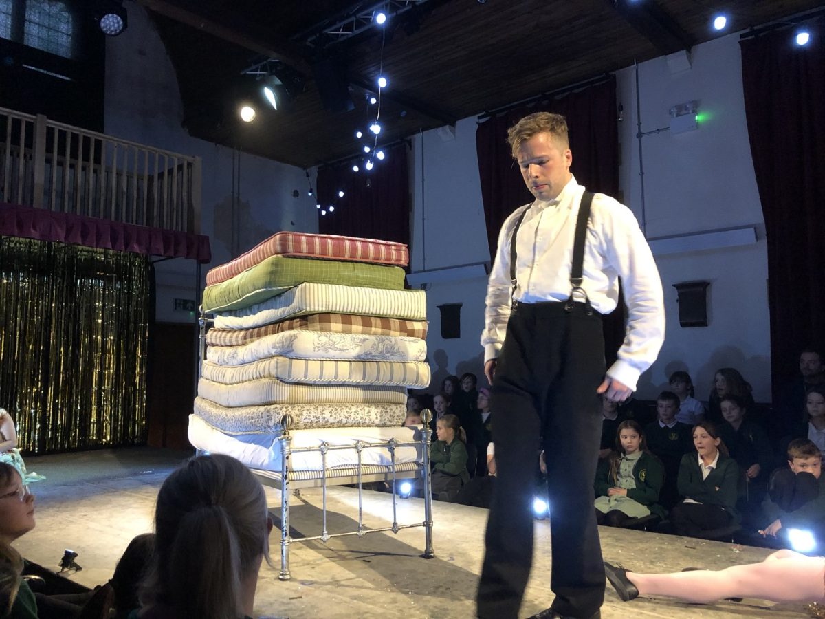 The sad story of The Little Match Girl was told with a modern twist using homelessness to relate it to our children. The Little Match Girl herself was a puppet, worked beautifully and sensitively by a puppeteer. Every time a match was lit a story was told to warm her up on a cold night. The children loved the naked suit used for The Emperor’s New Clothes and the modern Princess who wouldn’t stand for being tricked by a Prince!